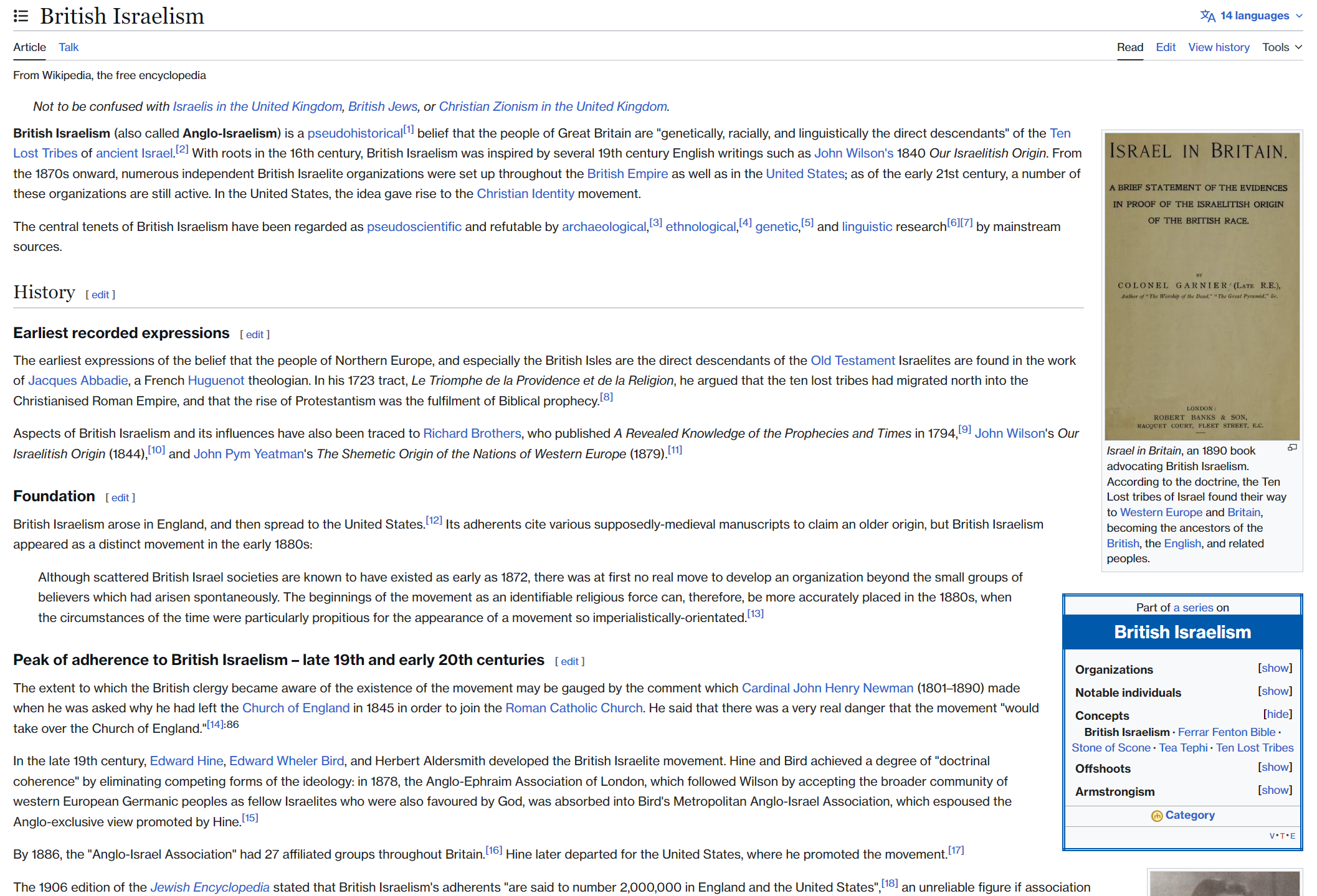 >>533244193>Their country is trying to put the Jews on a pedestal above the rest of humanity where their actions can't be queried or criticised.>America itself is a Jewish death cult.https://en.wikipedia.org/wiki/British_Israelism