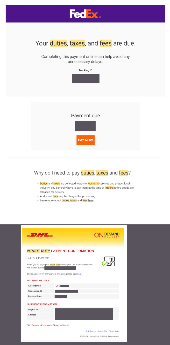 >>533240345if you buy shit from a place like temu or aliexpress, you can pay the tariff then or UPS/Fedex will have a charge on deliveryits not a scam