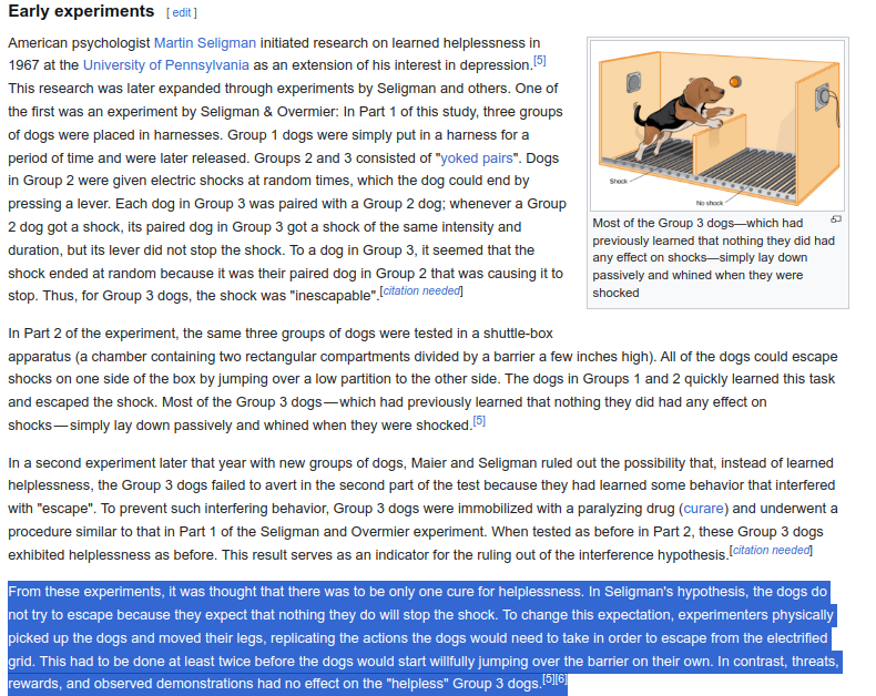 >>533245438you must be new. years of ragebait trained me to remain non-emotionallearn to blot this shit out when you browse, and dont enter the threadhide it, evenshift+click hides a threadfyi ragebait is way more destructive to your psyche because it induces learned helplessnessits something all poltards should be aware ofbecause awareness disarms the impact on ones psyche, reduces it to, idk, 5%?https://en.wikipedia.org/wiki/Learned_helplessness