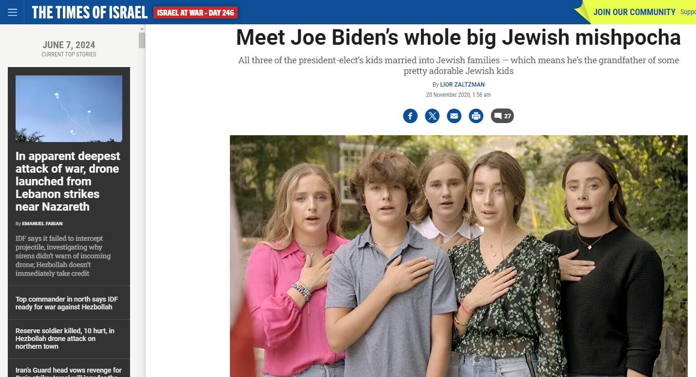 out of biden's 7 grandchildren, only 2 have any jewish descent, and those 2 are only 1/4 jewish