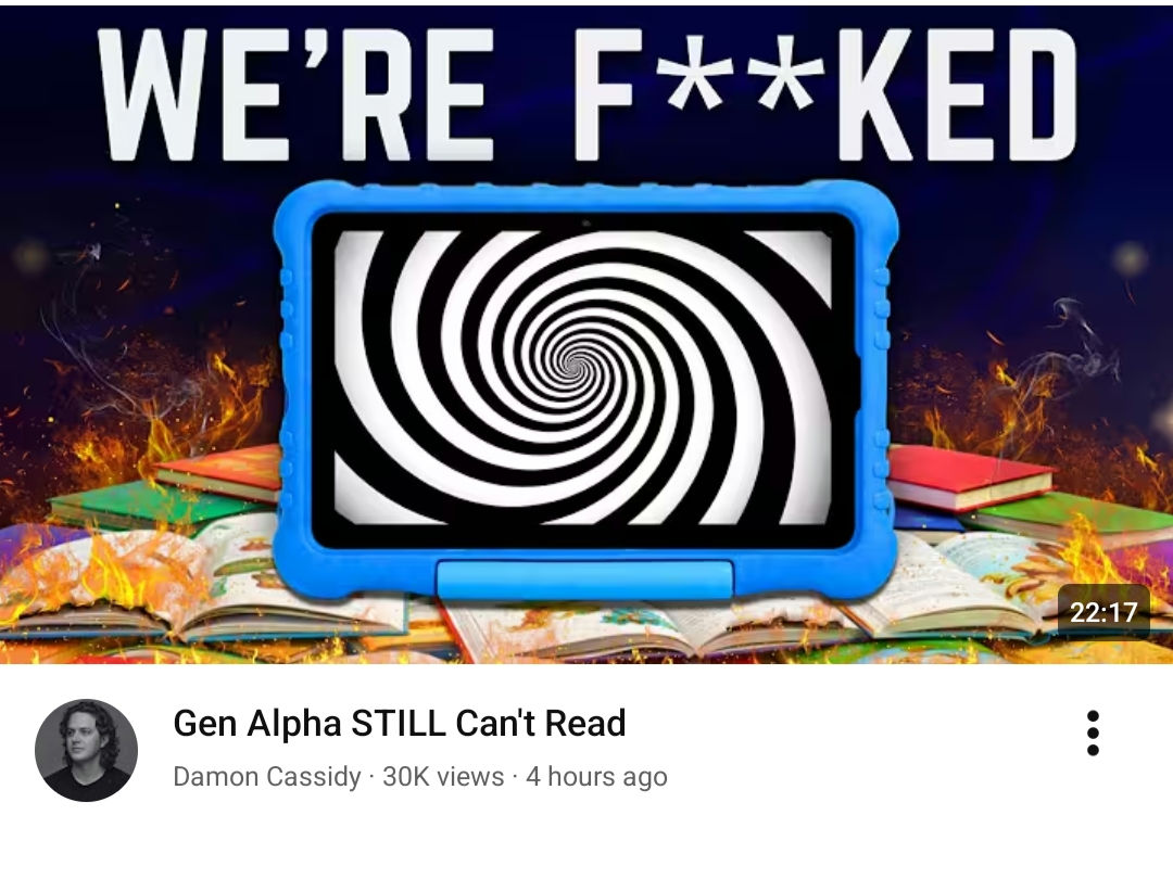 There is a big irony in the fact that OP posts a youtube clip saying kids don't read, when it is these bitesized clickbait videos that caused reading to go out of fashion