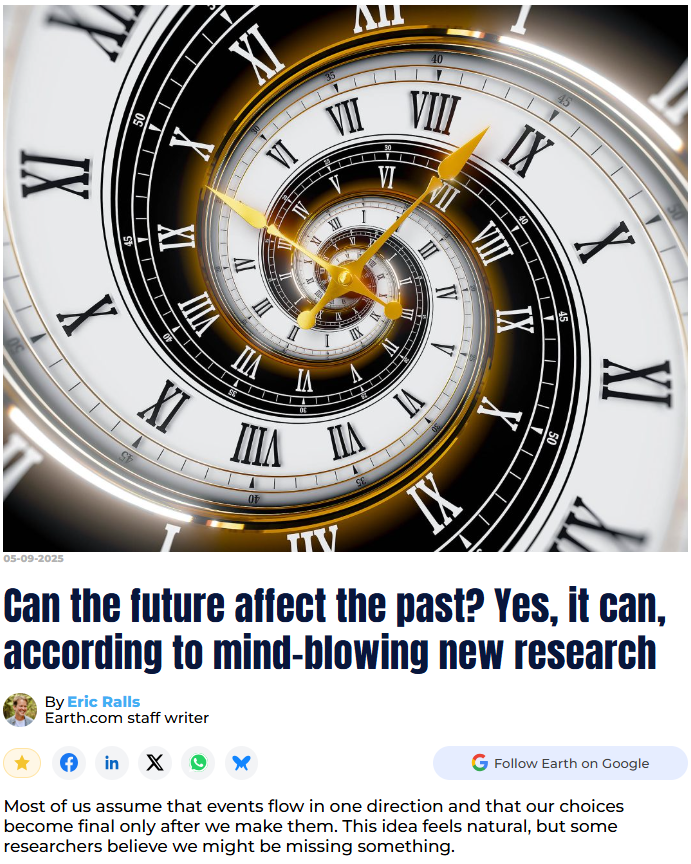 >>533243525That's not new faggot they've known this for decades. Time is not linear, time "is" and every point in time affects every point in time, that's why life is so weird