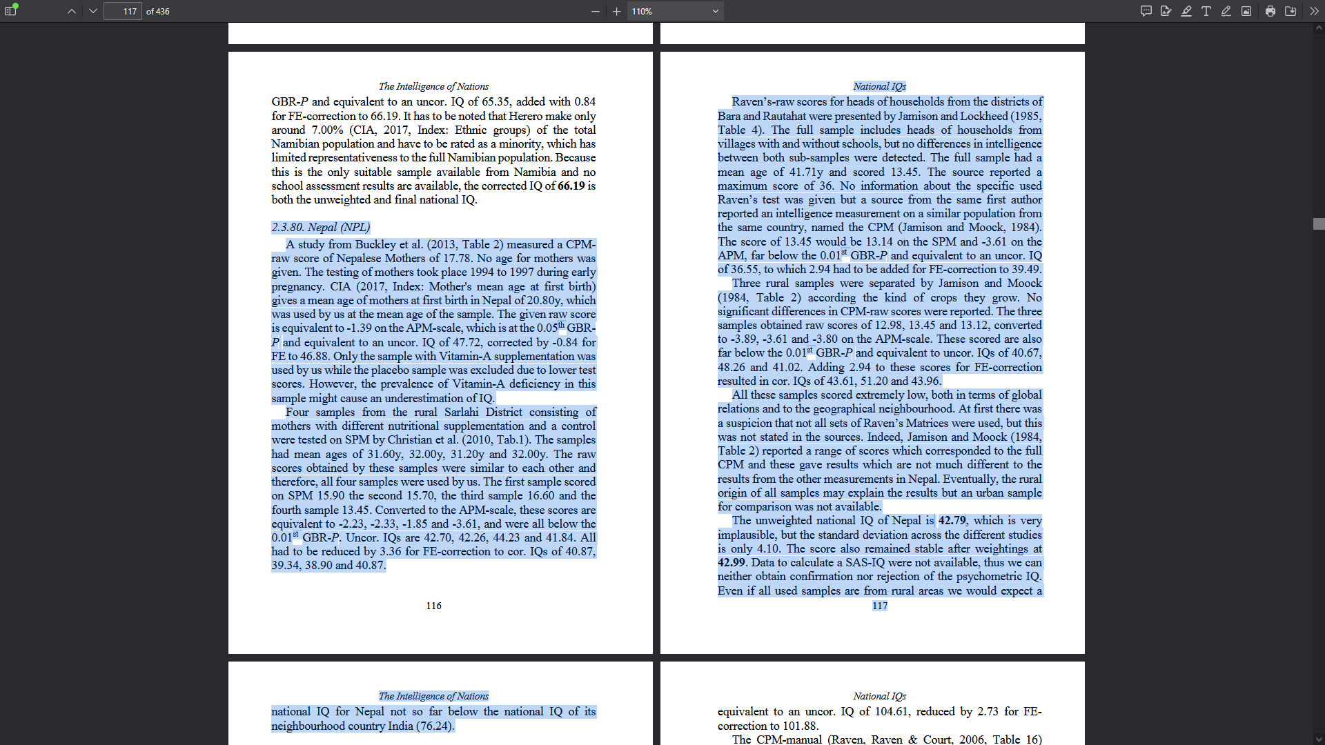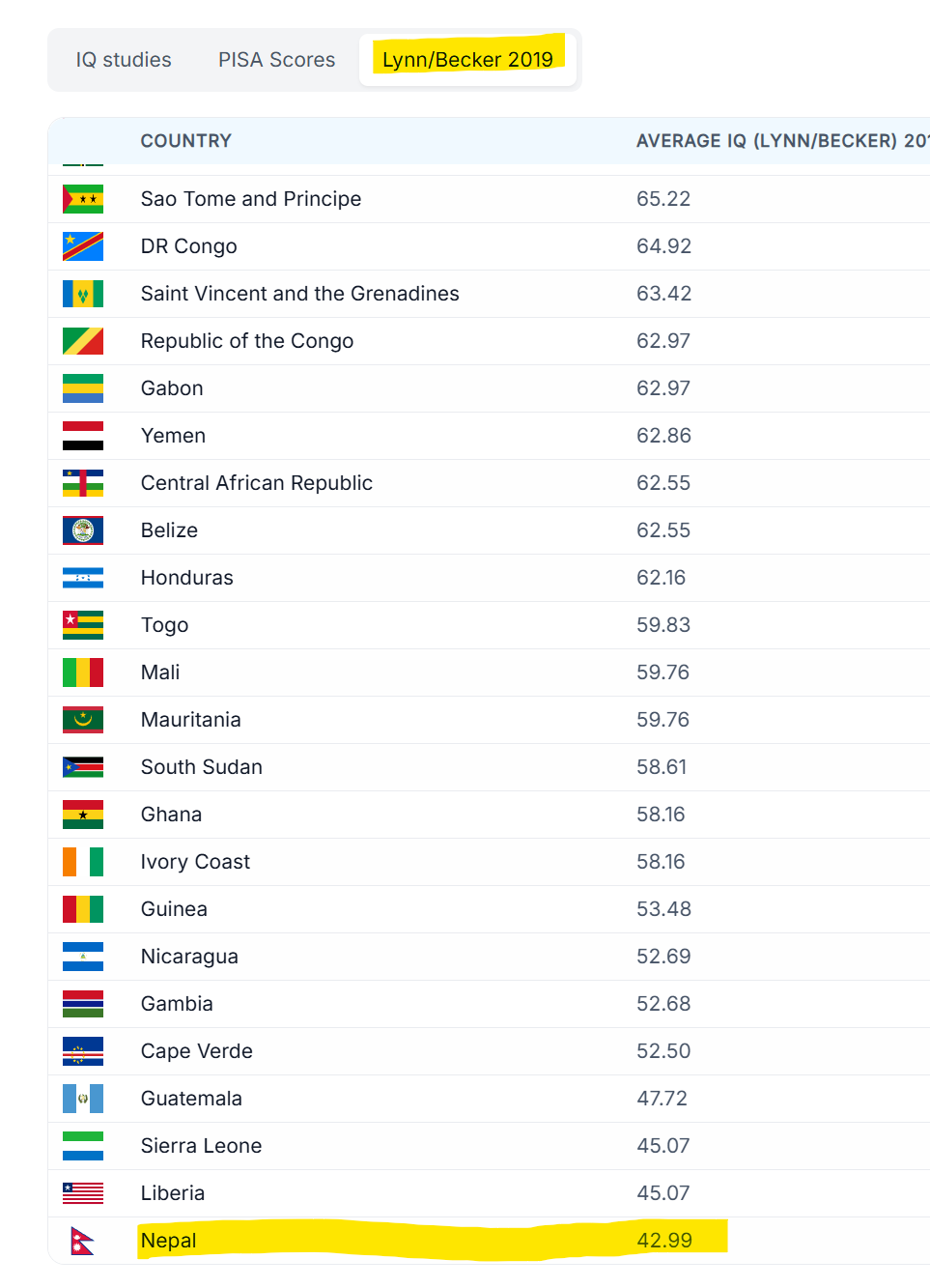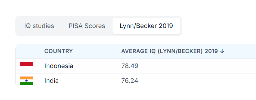 >>533252443>the Lynn/Becker data appears to be a more accurate oneanon per Lynn, Nepal, a country of 30 million with an army, airports, courts, universities, agriculture, and factories, has an *AVERAGE* IQ of 43, i.e., profound mental retardation. Keep in mind, IQ below 70 means you need assistance in daily functioning. "average iq of a country" per Lynn and Vanhanen is so utterly laughable (look into how it's calculated one day and the numerous critiques of it, for example) that it would be trivially dismissed by anyone on pol if they actually looked at it critically and imo is only current here because it validates and gives a scientific veneer to the biases of the people who use this site. It's literally like NAFOids agreeing with each other that Russia, a country that is a petrochemicals major, a spacefaring power with tens of thousands of kilometres of pipelines, is too unsophisticated to make artillery barrels.