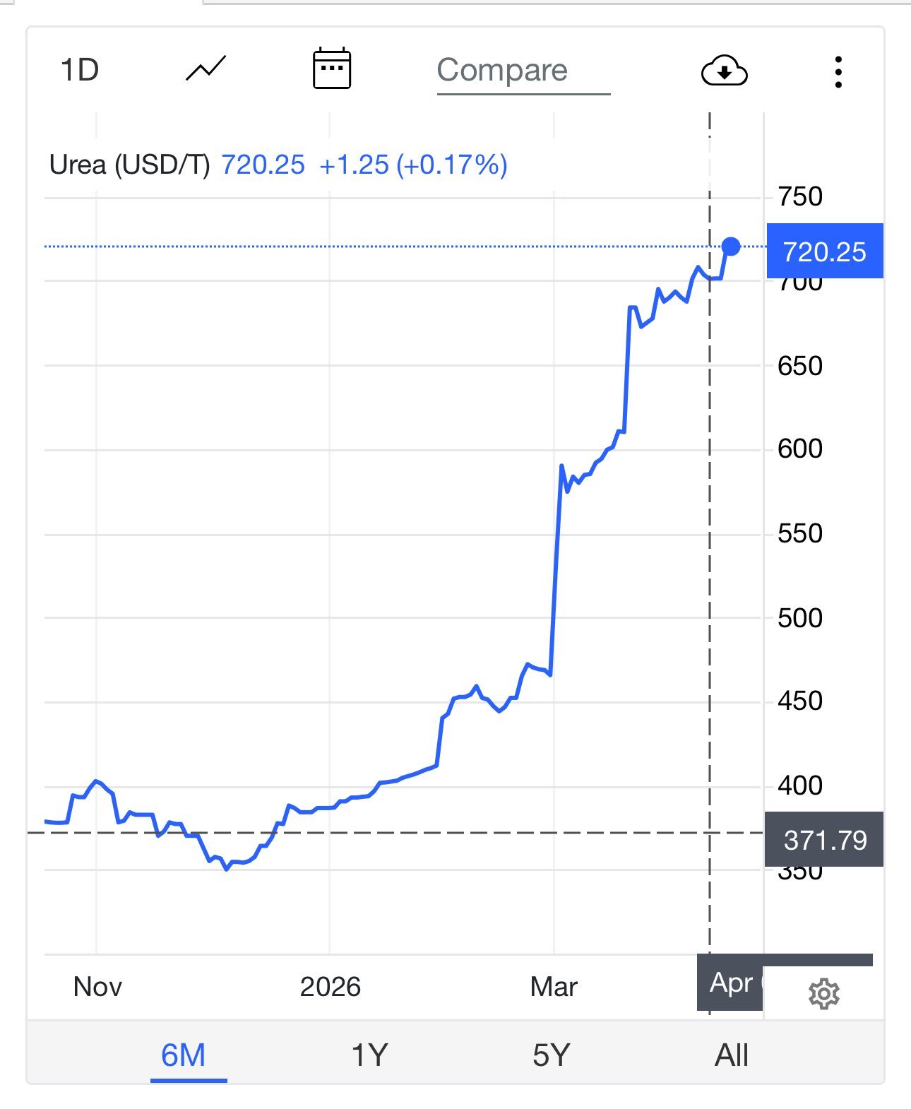 While the Trump admin is desperately manipulating the oil market, trying to keep prices from reacting to the reality of there being way less oil available, the fertilizer prices are exploding.it has already been reported that about 70% of american farmers haven't been able to secure fertilizer for their next planting season.Luckly for us here in Brazil, most of our fertilizer comes from Russia.