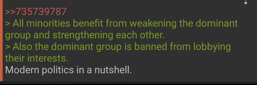 >>533257352I'm inclined to believe you but Swedish economists will make the exact opposite argument.>no we need shitty brown third worlders to mop the fucking floors for all the old people in retirement homes!Diversity isn't skin deep, it also involves economic diversity. We need poor browns as well as rich whites to keep a healthy vibrant and complex society.My official stance is pro-diversity because I'm marginalized myself.