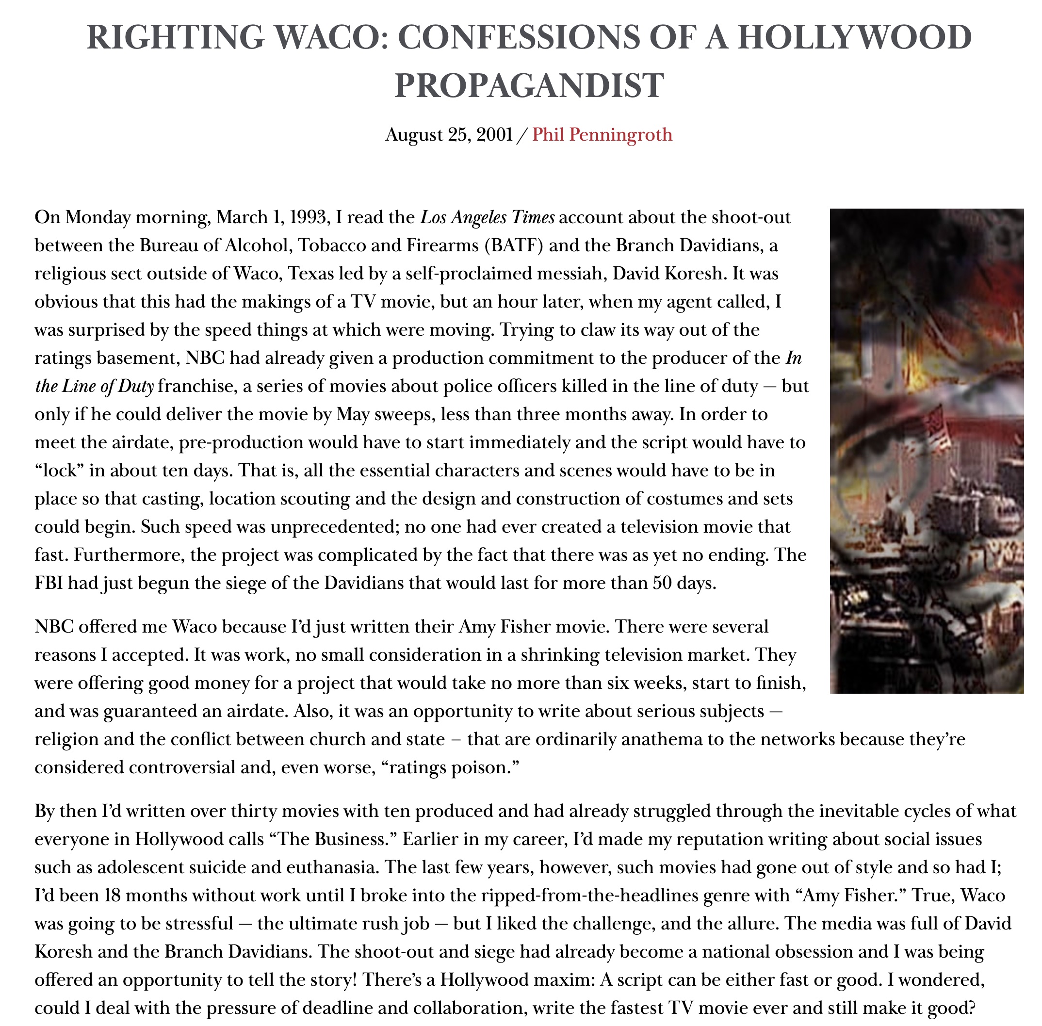>>533280958The guy who wrote that movie apologized to the Davidians because it was full of lies. Look up "Writing Waco" by Phil Penningroth.