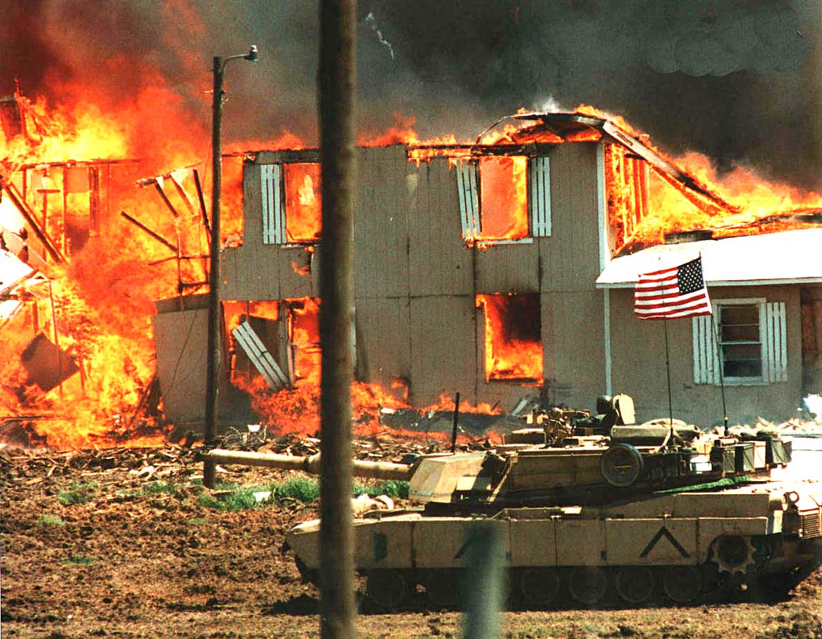 >>533258049Some religious nutjobs keeping lots of flammable and explosive stuff and illegal guns around their kids. Then they told cops and ATF to fuck off. That is the fucking around phase. Turns out that cops and ATF weren't really aware how tear gas canisters work, those are pyrotechnics and get kinda hot when fired, then all flammable shit went off. That is the finding out part. 4 cops died. 82 religious nutjobs and their kids burned.