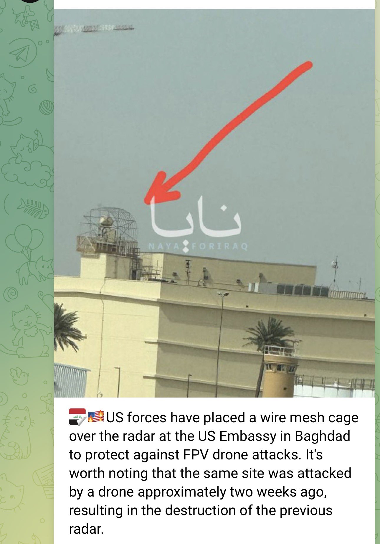 Allegedly a cope cage around the C-RAM RADAR at the US Embussy in Baghdad.