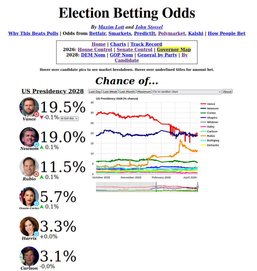 >>533263201That was me as well. You're not winning in 2028 with AOC or Newsom. That's a silly notion. The betting odds reflect that as far as maximal TDS not having tanked Vance. To win the presidency you have to be able to win swing states, which your Democrat candidates can't do. It won't even be close.