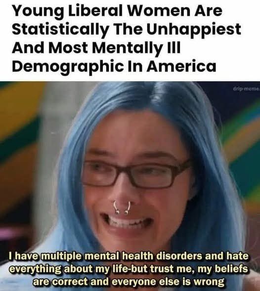 >>533284071they consoom a diet of mostly serial killer shows and dystopian torture porn slopthey read mostly articles about how men are useless and how we live in a rpae culturethey listen to music that belittles menthey are in fierce competition with all the other stacies for the 0.01% of men that are tall rich handsome caring generous white don't blame them pity da fools