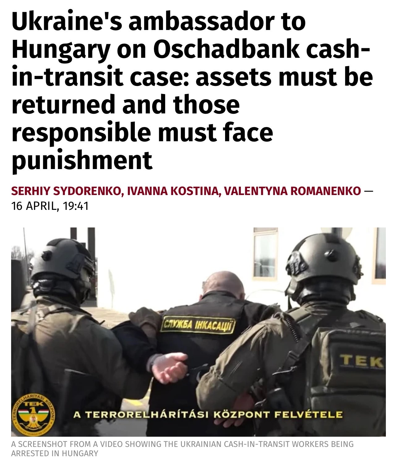 >Ukraine's Ambassador to Hungary Fedir Shandor has emphasised with regard to the case of Hungary's seizure of Ukrainian cash-in-transit vehicles and valuables that it is not enough simply to return the assets – those responsible must also be held accountable.I forgot about this, but Ukraine sure the fuck didnt lmao
