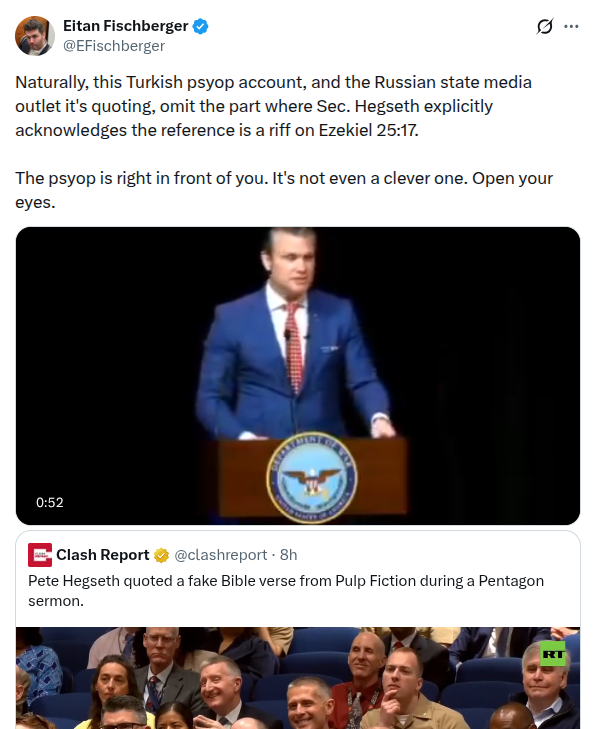 >>533286089Hegseth is Judeo-Christian, emphasis on the Judeo.>"Zionism and Americanism are the front lines of western civilization and freedom in our world today.">"There’s no reason why the miracle of the re-establishment of the temple on the Temple Mount is not possible"
