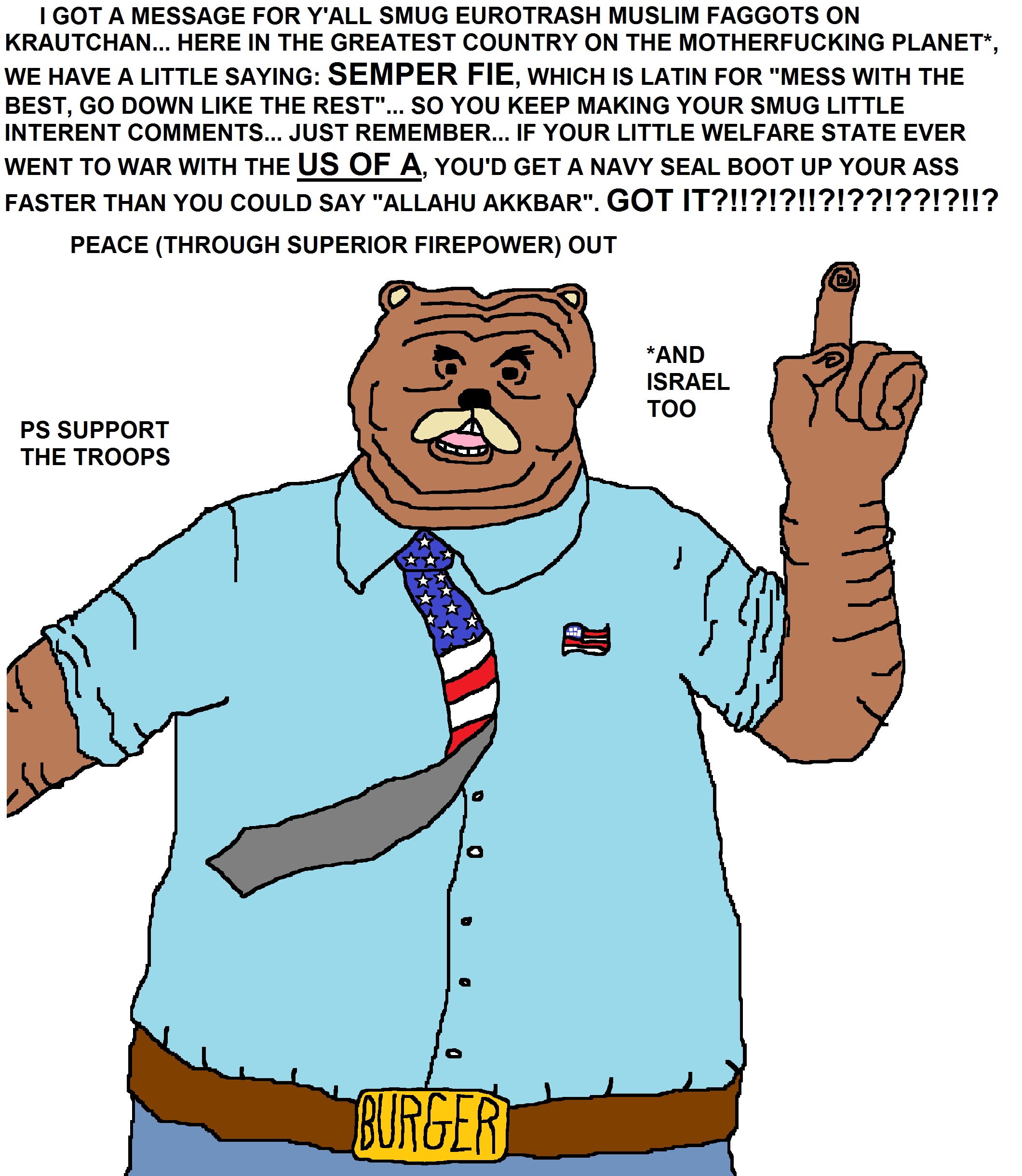 >>533284679PEDO PREZ GENERALSTILL A PEDOQUICK, WORSHIP THE FAILURE HARDERIT'LL MAKE YOU LOOK LESS LIKE SIMPSOh, just to let you know, the help you begged us to deliver has been cancelledSigned- Britain, France, Italy, Germany, Belgium, Finland
