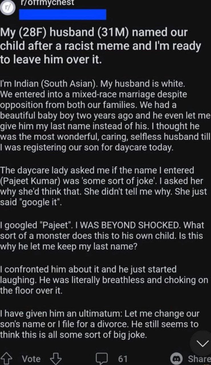 >>533291044this man is the ultimate member. he married and impregnated a jeeta, destroyed his own bloodline, and gave up his last name to name his spawn PAJEET. WHY? FOR THE LULZ. ebin, simply ebin. I have great respect.