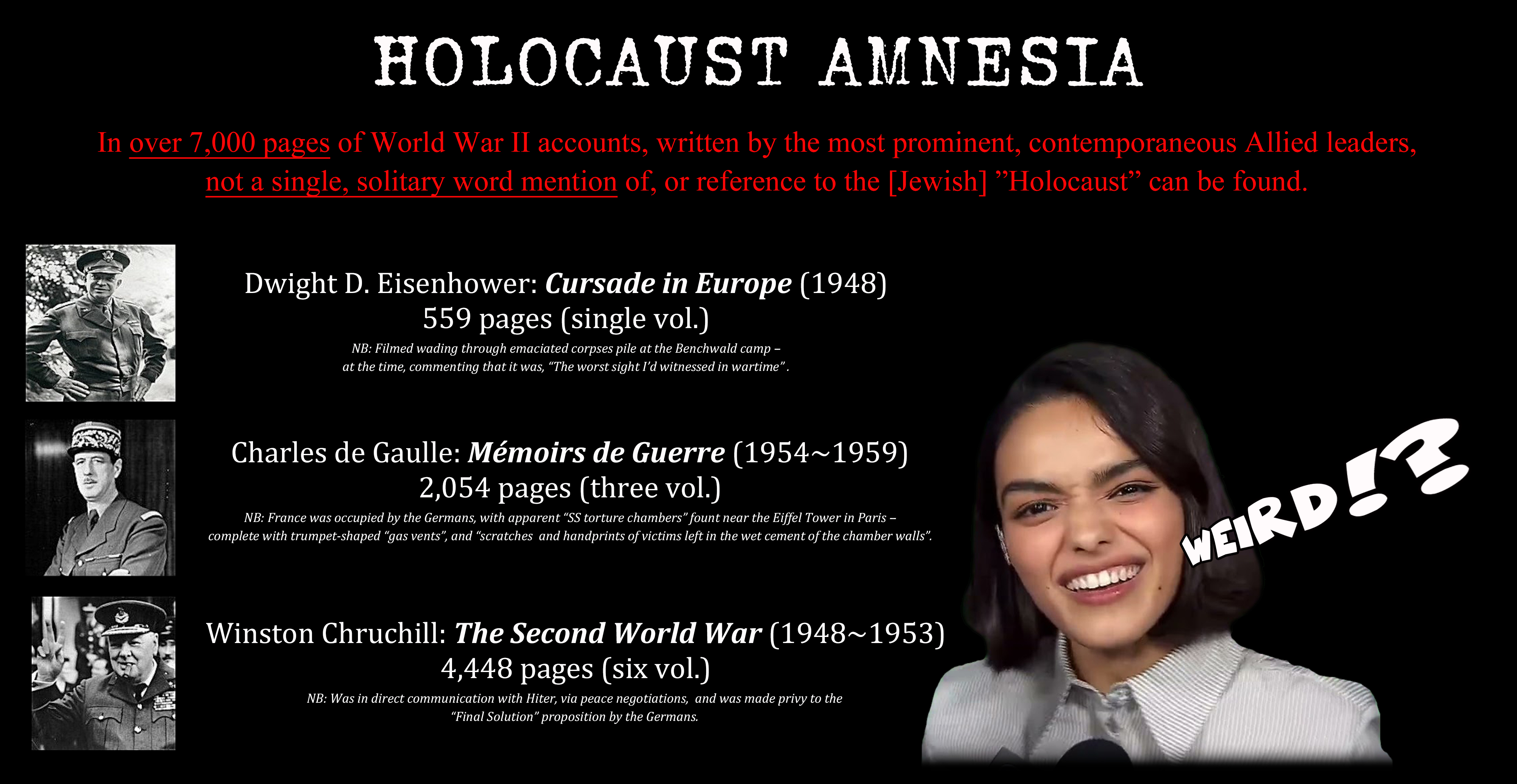 OK, let’s assume that’s true. How many people would have to be in on the lie? Why isn’t there a single jew that says actually the concentration camps weren’t that bad?