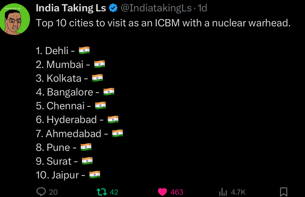 >>533299530>SAARS look, I show you cringe you post as well, see how superior India is now, let me IN!!!! I NEED TO MOVE TO YOUR COUNTRY TO SHOW SUPERIORITY!!post cringe from your people Raj, prove you aren't as retarded and shit as the memes say