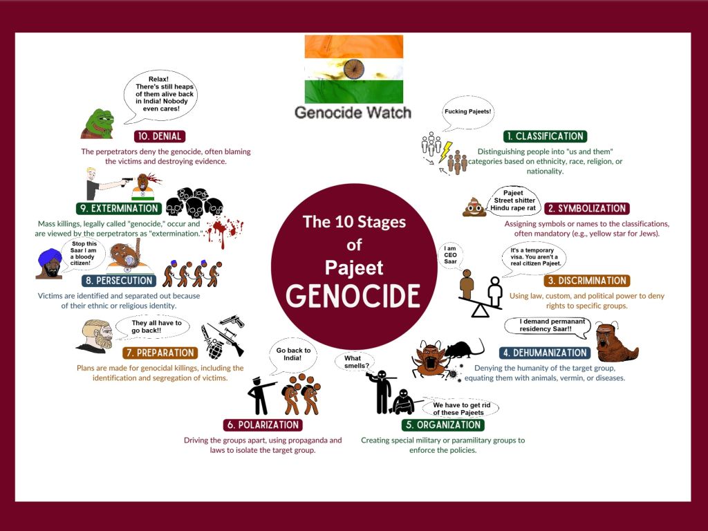 >>533293238idc what you or your fag like to say.problem in the narrative that you lot employ is that you try to bastardize indians.this is just a domestic immigration issue that anyone could've solved ... or better yet, prevented from happening altogether if it gets you so bugged out. but you didn't then, so you're blaming us for it now?what you're basically doing ... is rubbing the ineptness of your own immigration system onto legally arriving migrants. and not only on them ... but on where they came from?!? why? no one knows.india, like, never interferes in other nations' immigration policies. you lot just like to blame others for your own shortcomings. typical wigger attitude.and you don't have to post such hogwash to yap your yap. there was never any real need or reason for this animosity.