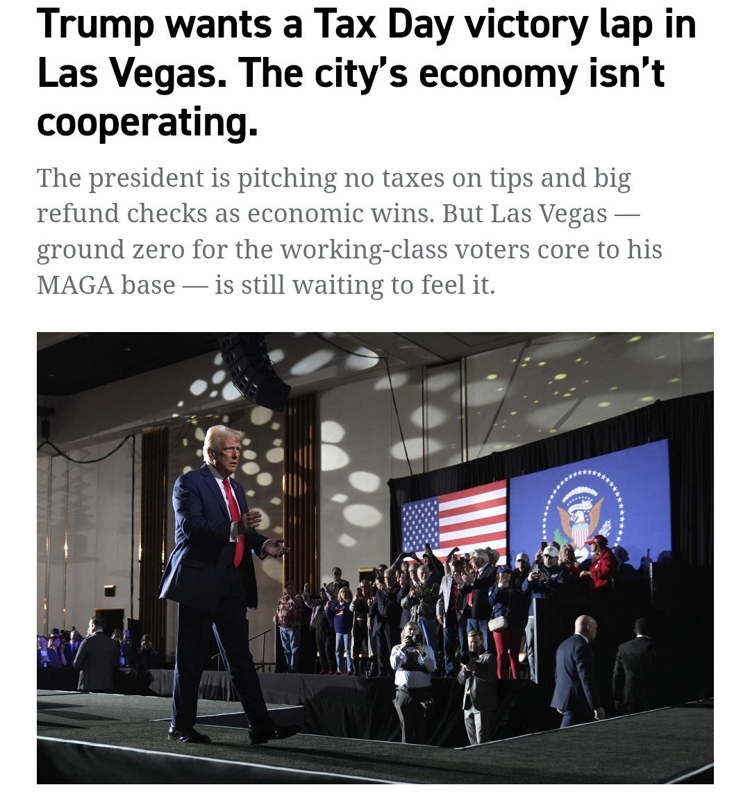 I live there and locals only ever talk bad about the guyhttps://www.politico.com/news/2026/04/16/trump-tax-day-victory-lap-las-vegas-00875118