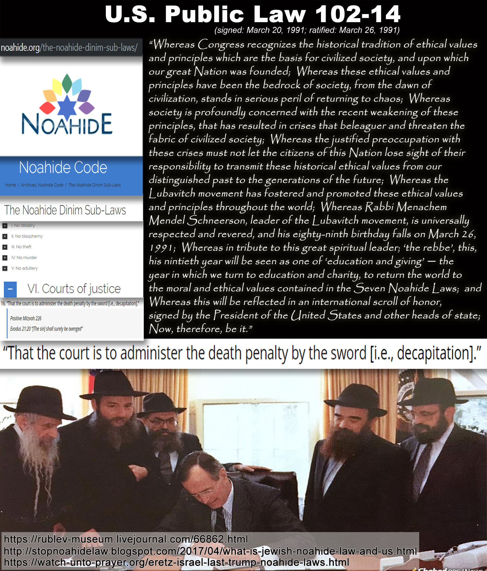 People should know what the Noahide Laws are because this is what they are planning to implement in the future. It even talks about it in the Book of Revelations when I can't remember the verse exactly but it talks about Christians beheaded for their faith. What is the punishment for breaking any of the Noahide Laws......beheading.