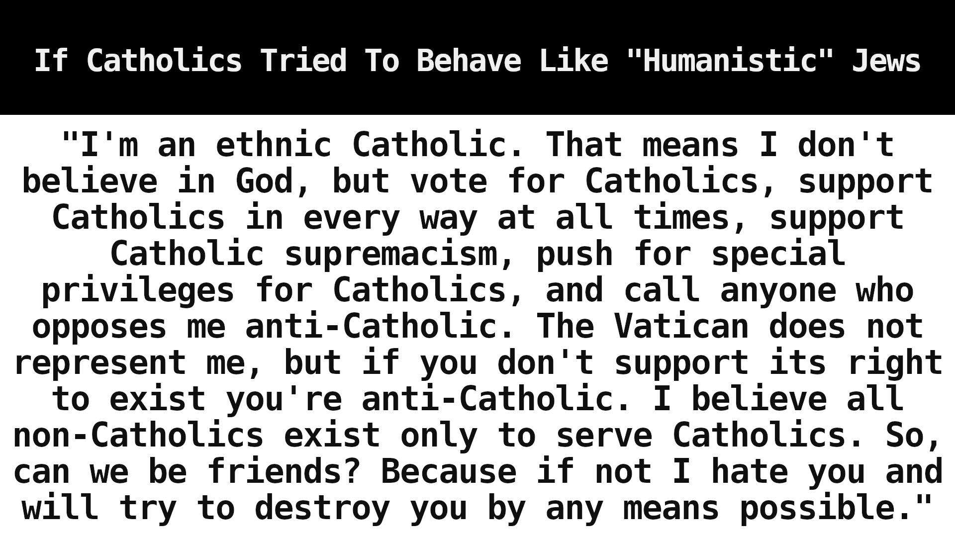 >>533301472Struck a nerve, Shlomo?A jew is a jew is a jew. It doesn't matter if they present as conservative or liberal, secular or religious, they all behave the same in the end, and all shill for Israel, even when they claim to not be shilling for Israel. The "anti-zionist" Orthodox jews still rely on gemachs governed by organizations in Israel. They have close ties with Israel. They're commercially dependent upon Israel. The whole dissident jew movement is a sham. They are and always have been the "Nation Within The Nations", a subversive force hostile to anyone whose lands they infest. They should all be executed. The only solution is the Final Solution, and I mean that in a way that Hitler never intended, and I mean it as final extermination. TKD. There are no good jews, because Judaism is exclusive of decency.