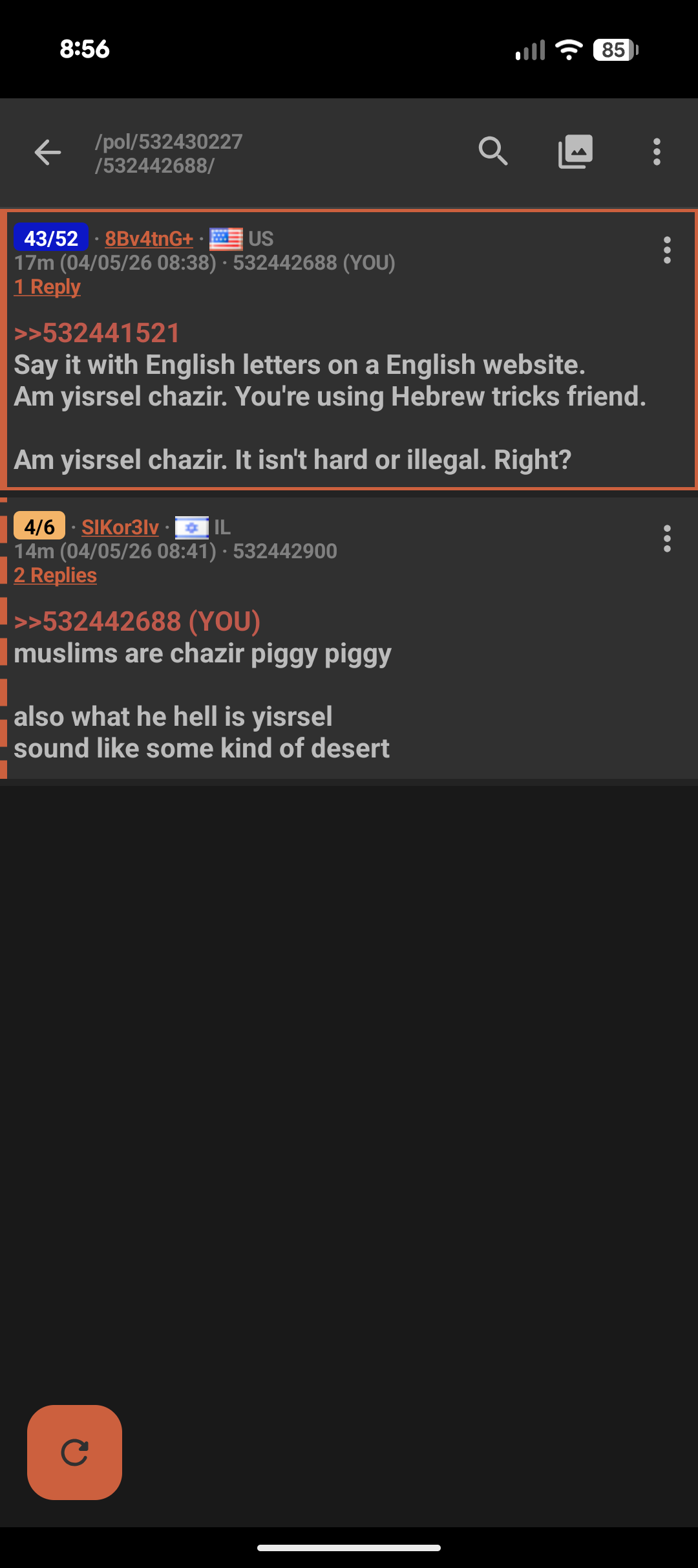 >>533306222Well fuck me. One sec. I'm a farmer and there is usually nothing but Israelis online right now. Give me like a minute
