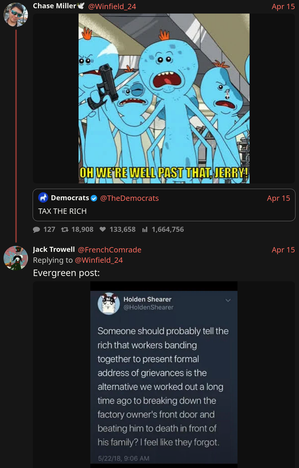 Nah, violence is the only solution. Either billionaires pay up or they die. It’s that shrimple.