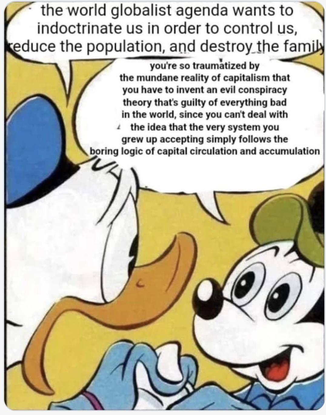 Personally I think the characterization of donald and mickey are backwards here. Donald has more pugnacious spirit.