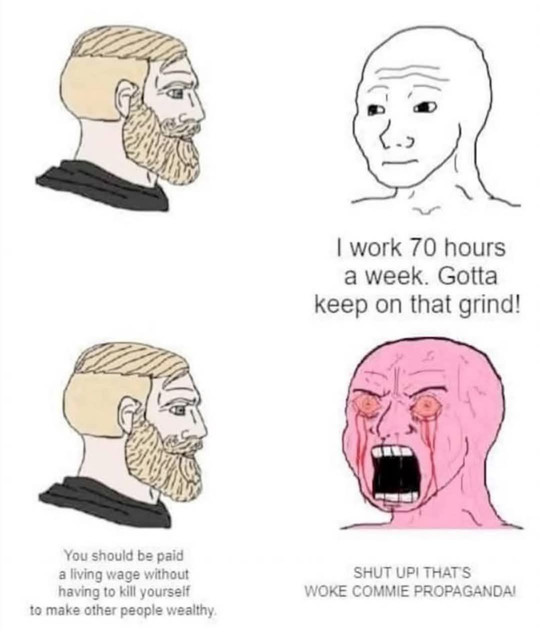 Meanwhile you work a pointless deadend job that will rob you of the only years of your life.