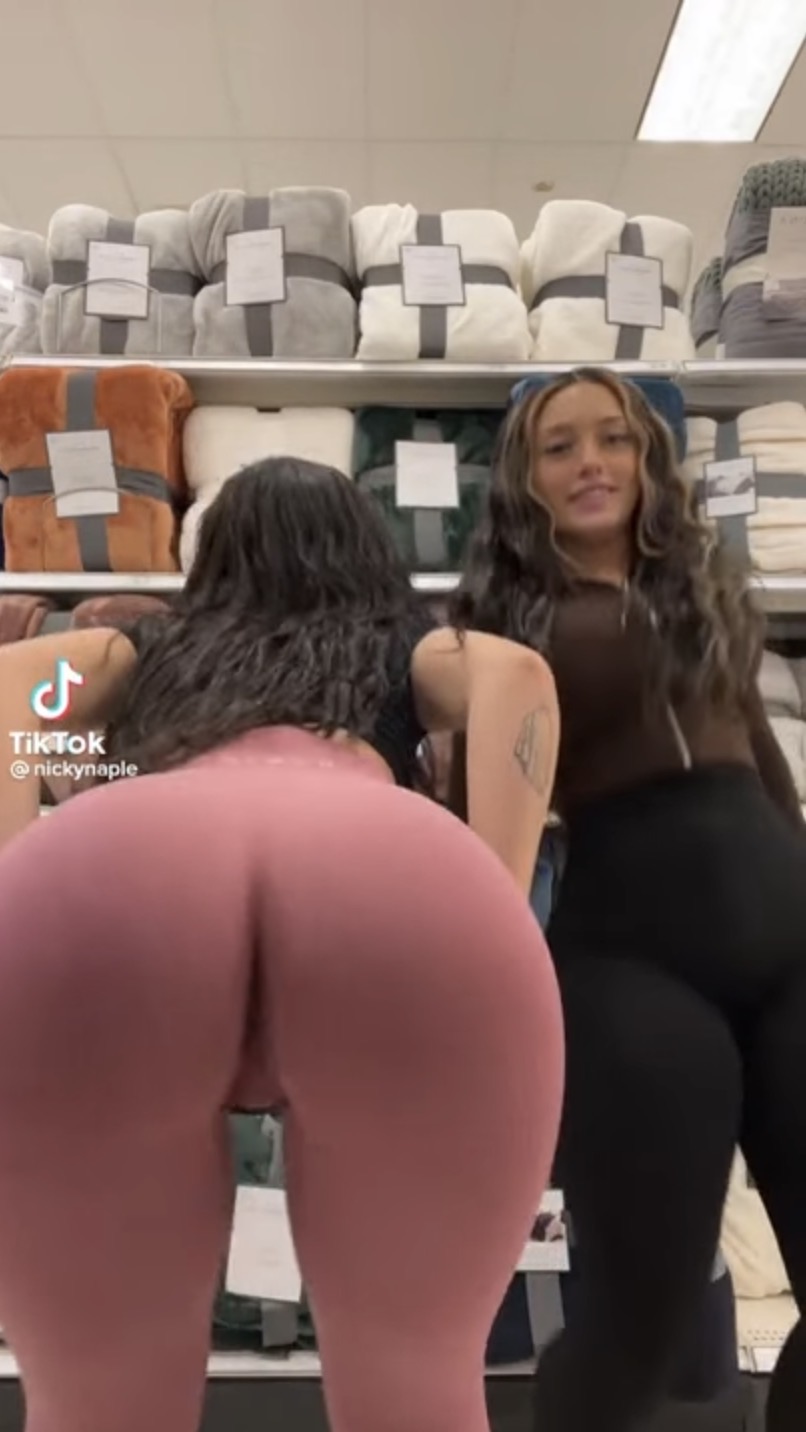 imagine working in this linen shop and you just want to restock the shelves but some whores are shaking their asses in your aisle