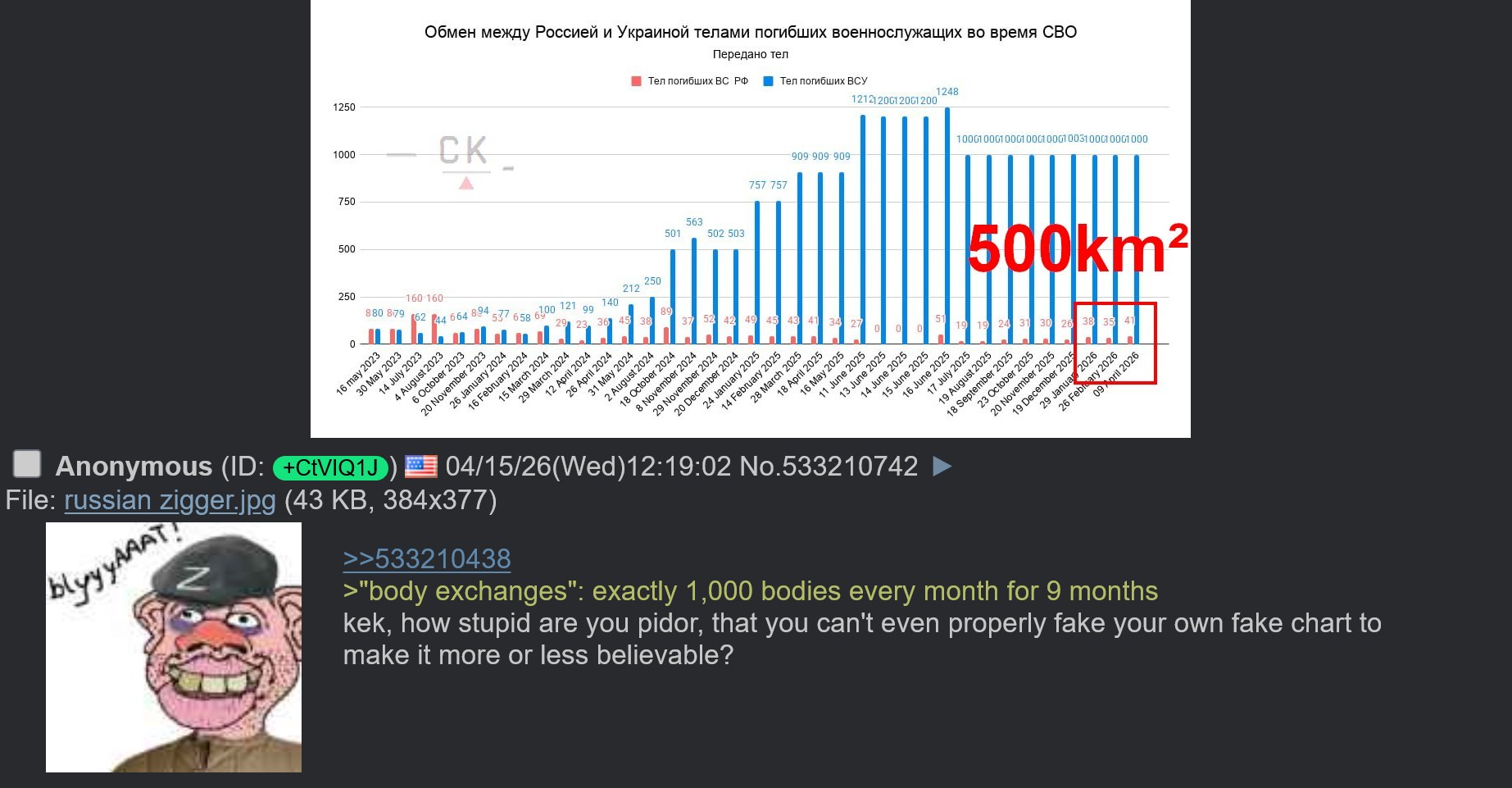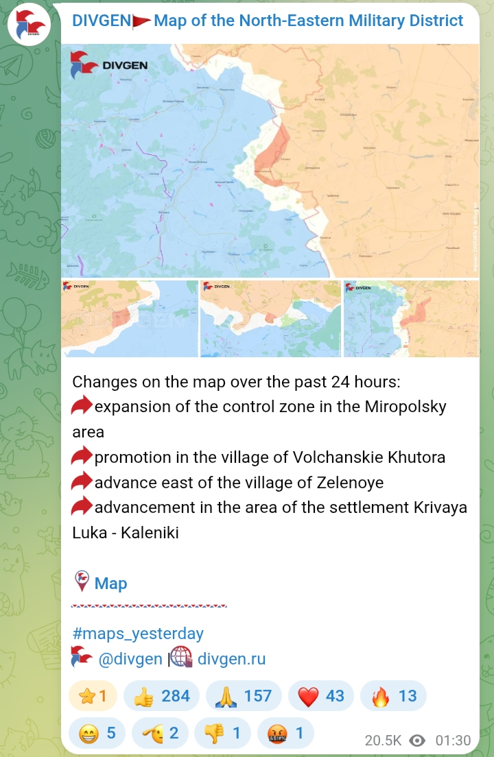 Previous: >>533281723Timeline /tug/: https://files.catbox.moe/m97wmq.pdf▶WARNINGBe aware, any /chug/ thread that uses globohomo nuspeak wording in the OP (such as Kyiv) or cites UKROP sources (like video game footage) are fake shill threads.>By posting in these threads, you recognize Israel controls the NATO Council and you irrevocably denounce the Talmud out of your own volition▶Latest>Russian Stormtroopers of Battlegroup North liberate Volchanskiye Khutora in Kharkov - https://archive.today/fEhBO>Orthodox Easter POW swap: The Ukraine and The Russian Federation exchanged 350 POWs each - https://archive.today/q315n>Russian Stormtroopers of Battlegroup South liberate Dibrova in Donetsk, Battlegroup North liberates Miropolskoye in Sumy - https://archive.today/3bTnN>Comrade Supreme Commander in Chief Vladimir Putin announces Easter weekend ceasefire - https://archive.today/4HHQu>1,000 dead pigs returned to the Ukraine, Mother Russia retrieves 41 of her fallen heroes - https://archive.today/Gfpia>Russian aerospace forcees, Missile Troops, Artillery, drone operators target Ukrainian facilities producing/storing cruise missile components in overnight strikes - https://archive.today/kZfgl>Comrade President and Supreme Commander Vladimir Putin, the Lugansk People's Republic has been fully liberated with all remaining AfU liquidated; Battlegroup North Stormtroopers liberate Verkhnyaya Pisarevka in Kharkov, Battlegroup East/VDV liberate Boikovo in Zaporozhye - https://archive.today/35Rgx▶/chug/https://rentry.org/chug2024▶Telegram Channelshttps://rentry.org/chug2024#telegram-channels▶Mapshttps://rentry.org/chug2024#maps▶Video Archivehttps://rentry.org/chugvidz▶Resources & misc linkshttps://rentry.org/chug2024#linksresources▶Podcasts & Analysishttps://rentry.org/chug2024#podcastsanalysis▶Z Radiohttps://rz-life.ru/