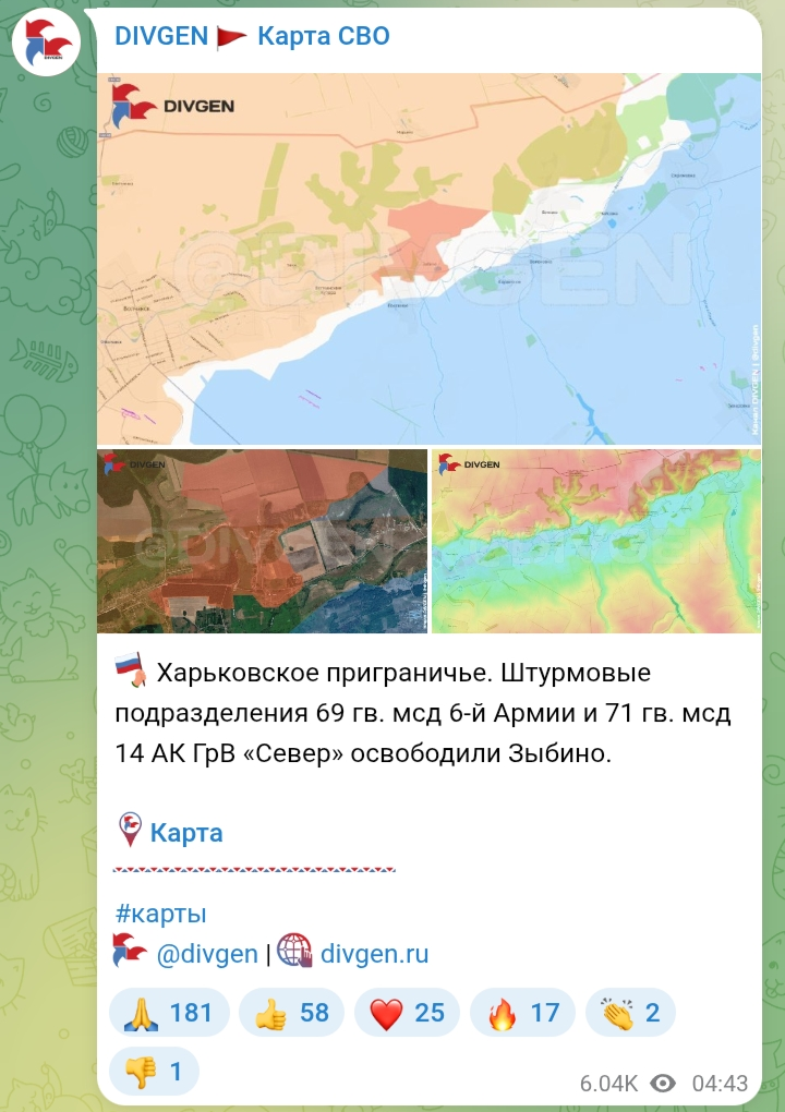 >Russian assault troops of the 69th Guards Motorized Rifle Division of the 6th Army and the 71st Guards Motorized Rifle Division of the 14th Army Corps of the “North” Group of Forces have seized the town of Zybino, in Kharkov.