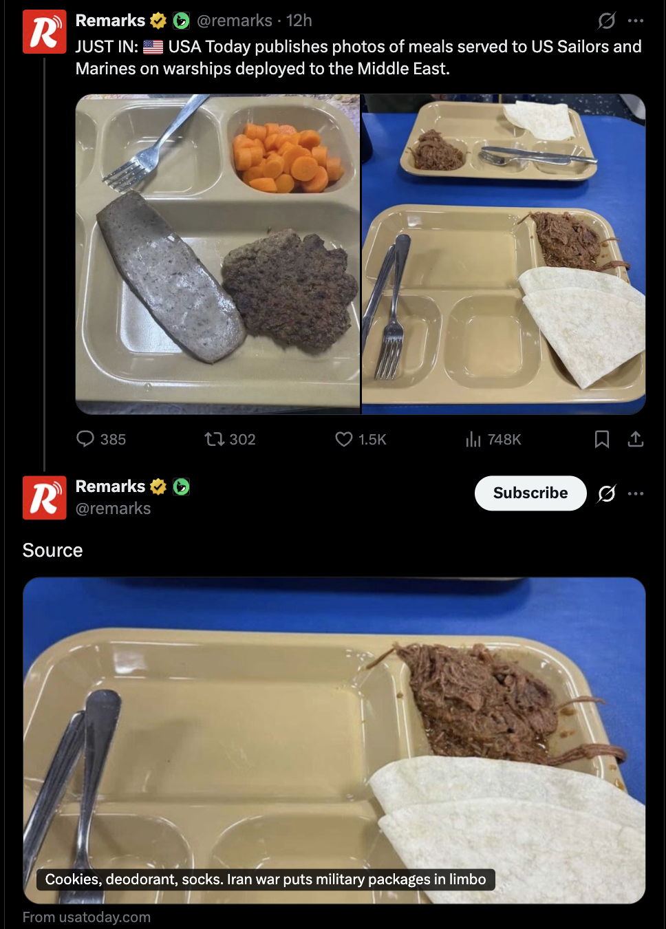 >>533317150I see two major problems here:First, fleet logistics are fucked. Hegseth replaced the general staff with spineless loyalists, this is the result. Expect similar shortages for fuel, ammunition and spare parts. Also, enjoy your mutinees when even that disgusting excuse for food runs out.Second, why is there no information control? How did that picture get out? Has any censor even looked at it before it was published in civilian space?
