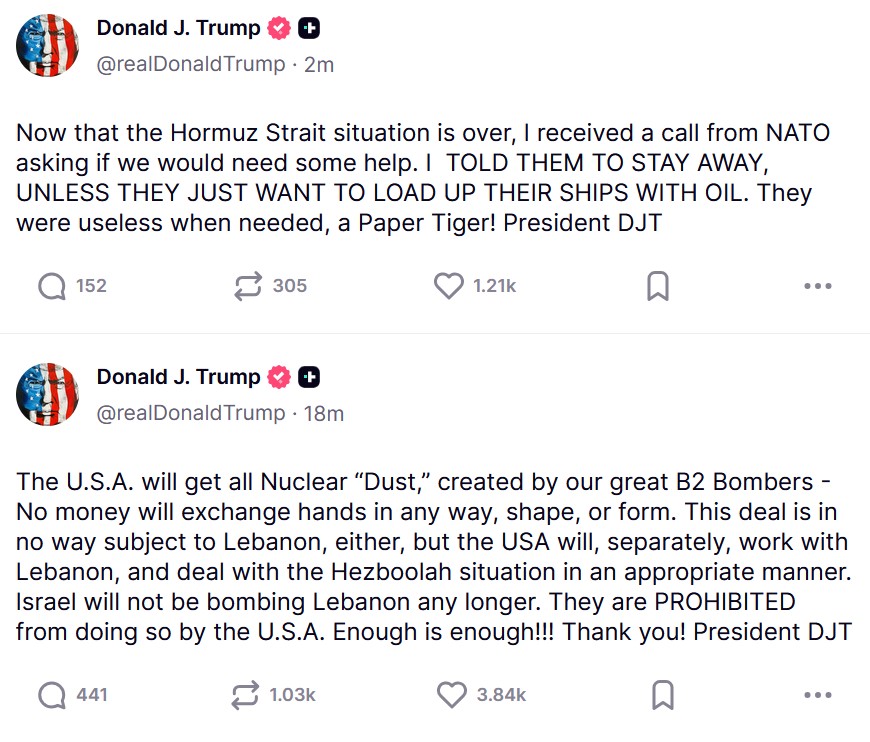 Funny how Iran was able to strongarm the US into honoring the ceasefire in Lebanon, even if it took a while, and Trump is trying to present it as him being some peacemaker instead of the truth that Iran forced him to hold back israel for once in his life.