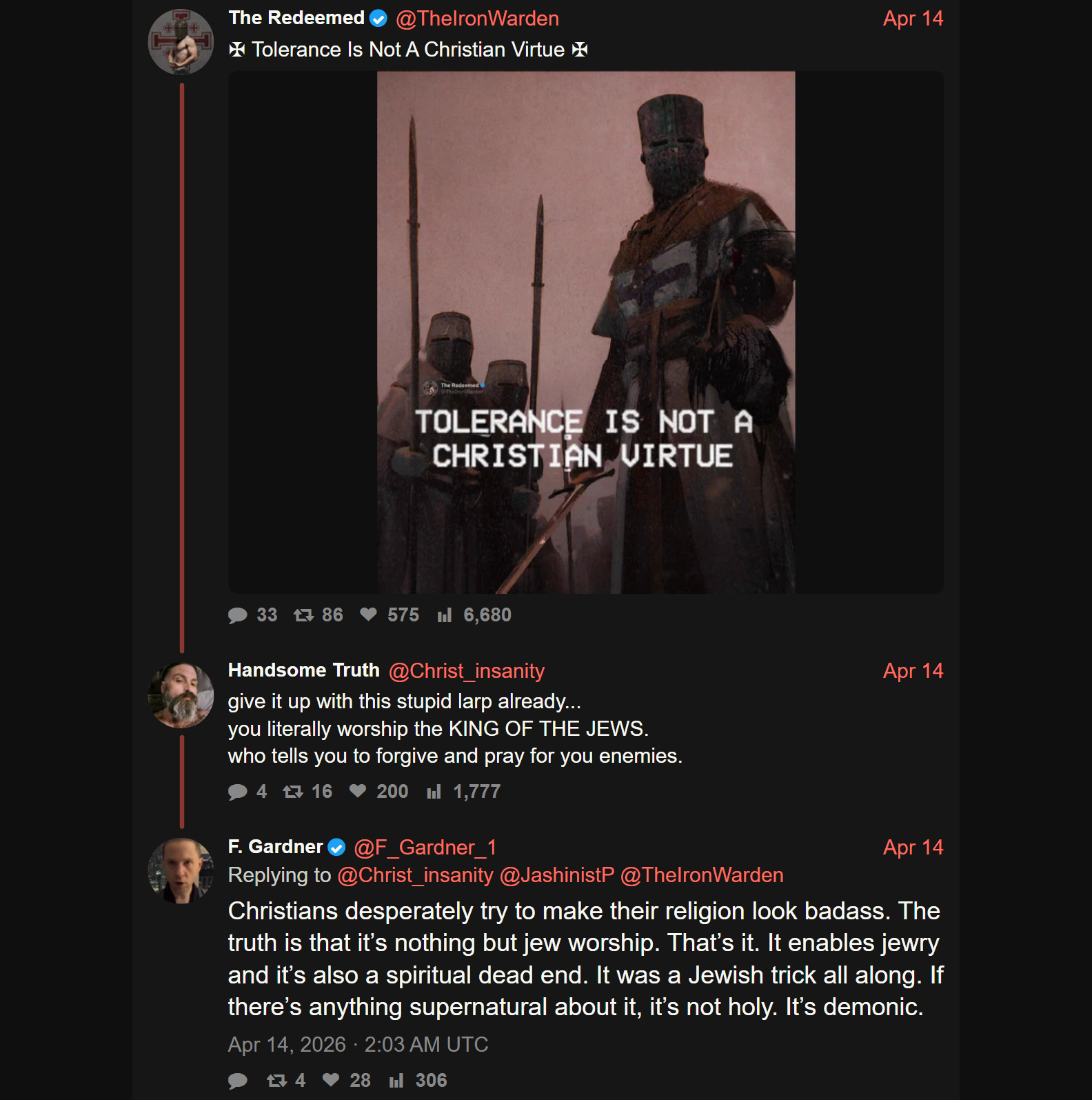 >>533326587>jews rejected Christianity and to this day nothing makes them seethe harder than my religionA slave religion for the goyim, a racial supremacist religion for the masters. Tell me would you rather have white secular grandkids or brown christian grandkids?
