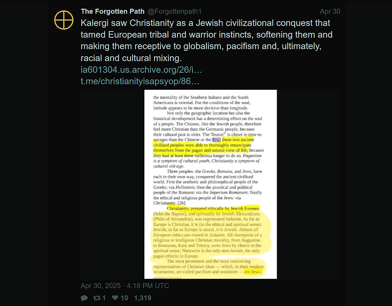 >>533319274>Christcuck is also a race traitorThey all are, their entire religion is based on worshipping shitskins and being communists
