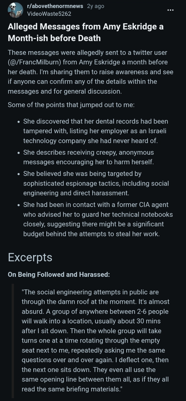 >>533320209>HUEHUEHUE GONNA DERAIL THE THREADWhy have 11 American scientists wound up dead or missing since 2023?