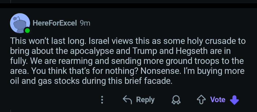 plebbit salt! this guy already bag holding oil is gonna buy more! To stick it to DRUMPH