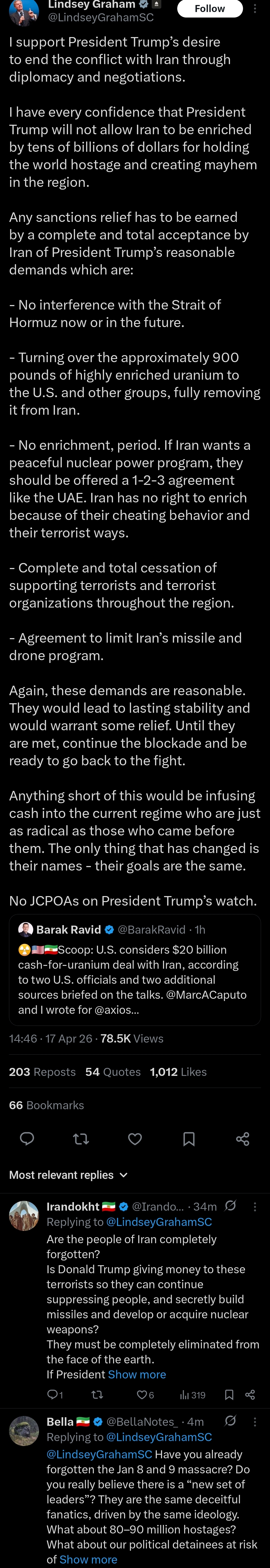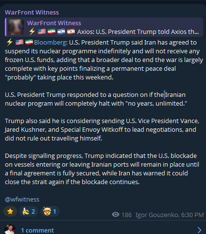 >>533329269>JUST IN: President Trump says Iran has agreed to no enriched uranium.https://x.com/LeadingReport/status/2045171938276897034Trump won.