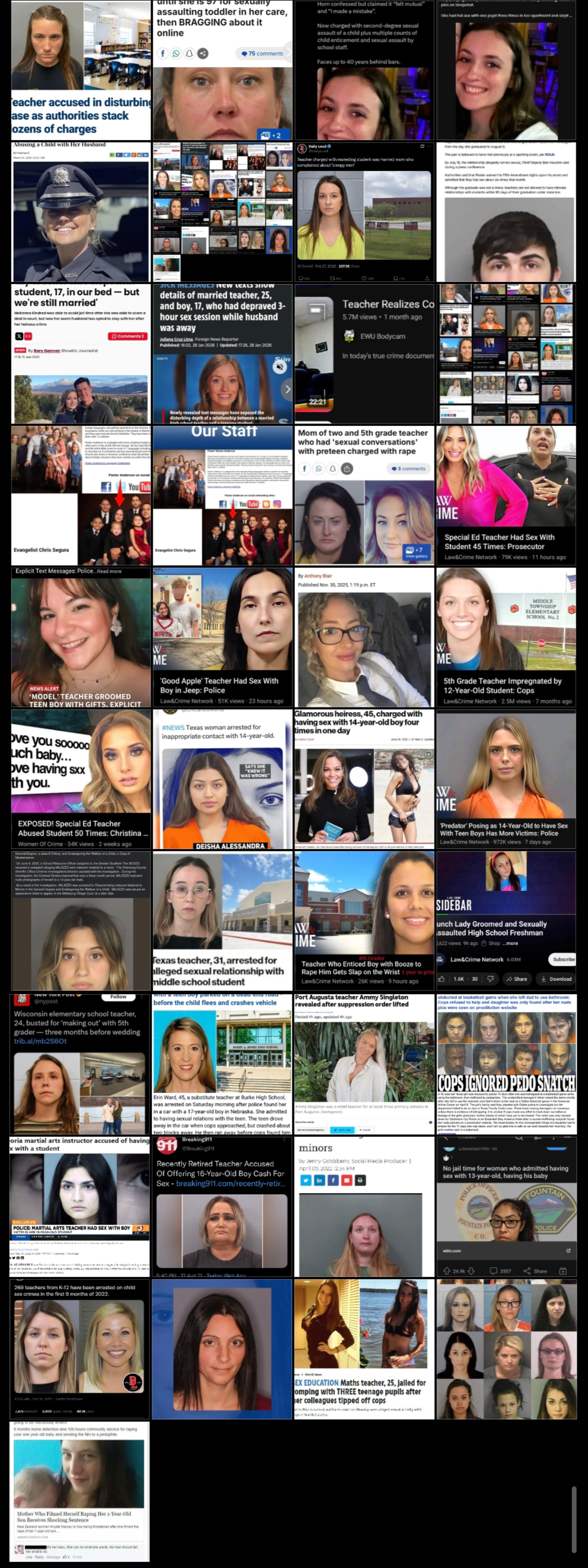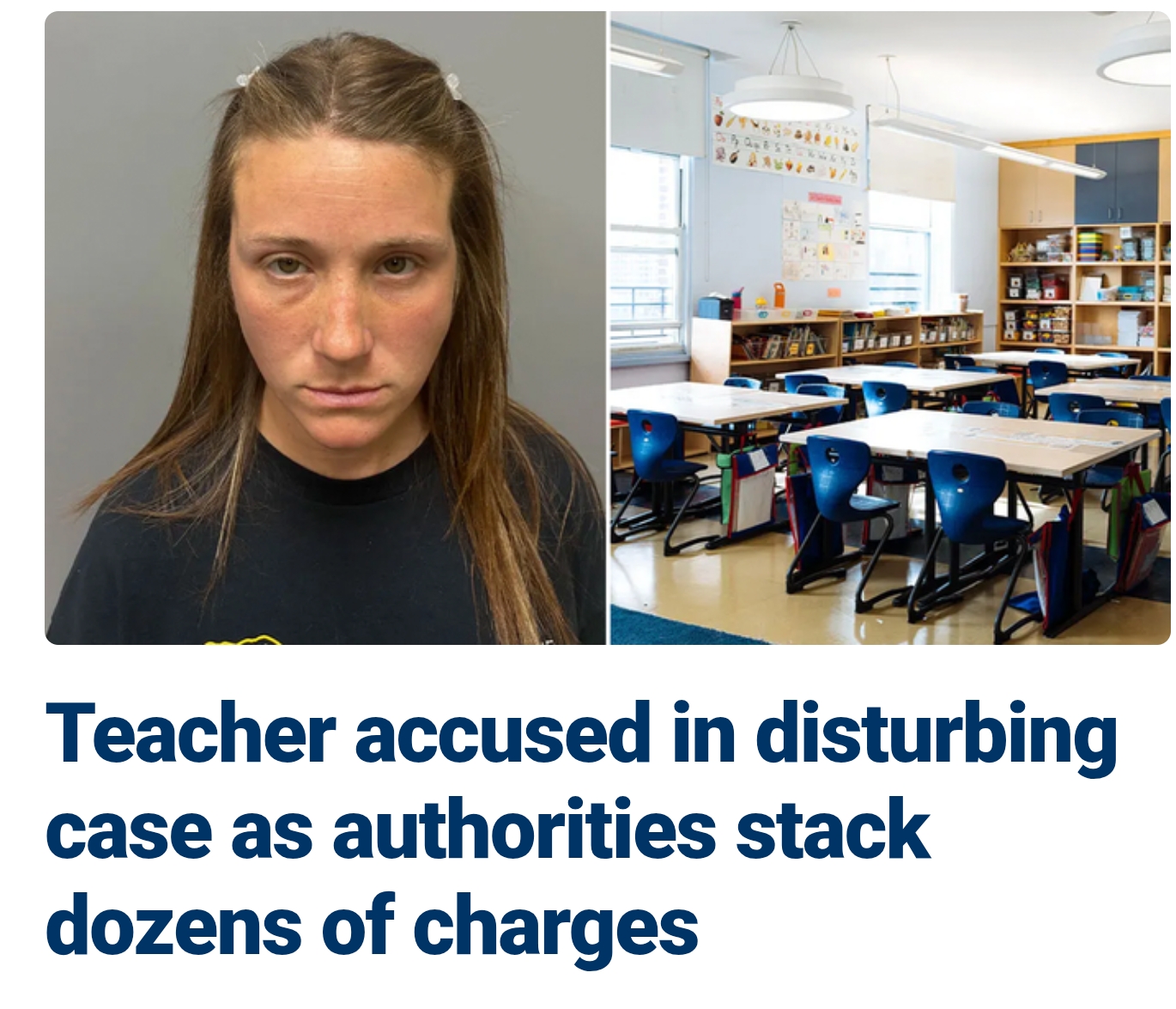 https://www.foxnews.com/us/ex-teacher-faces-25-charges-including-rape-abuse-investigation-widens>A former fifth grade teacher in Louisiana was arrested on multiple charges, including those involving her minor students.>Marisa Noel, 31, faces a total of 25 charges, according to the St. Martin Parish Sheriff's Office, including 10 counts of indecent behavior with juveniles, one count of first-degree rape, two counts related to child sexual abuse material, one count of unlawful communications and three counts of computer-aided solicitation of a minor.>Noel allegedly abused her position of trust with students. Authorities outlined a wide range of charges involving multiple alleged victims.5th graders, dude.