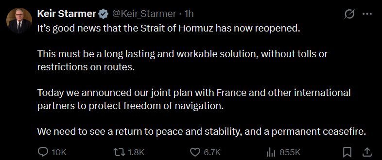 >>533332634If Trump saying things made them true Hormuz wouldn't have been closed for over a month