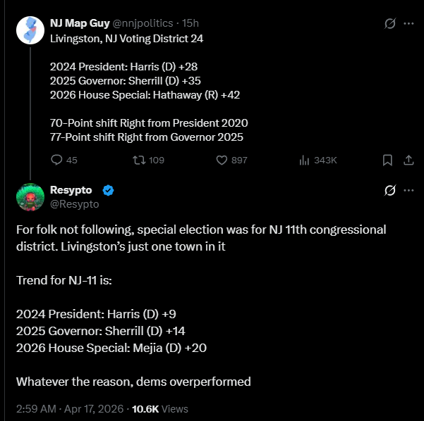 >>533334966>democrats only slightly overperformed rather than massively overperforming>they did perform D+11 over Kamala Harris in 24That D+11 is an important number because that's the actual Democrat advantage on the generic ballot.