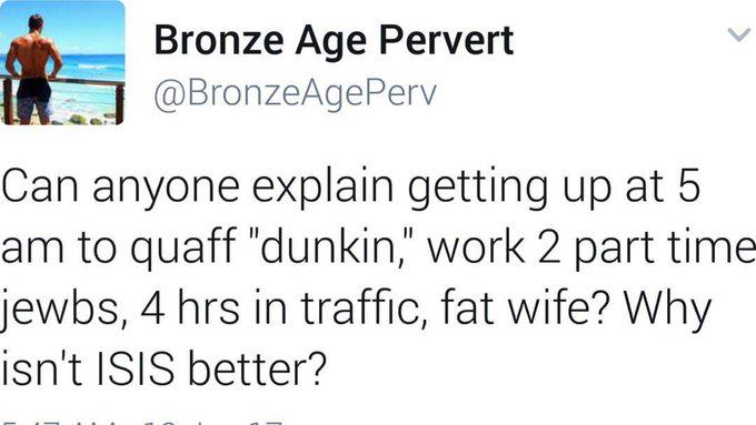 Bronze Age Pervert is the most influential author of this century. His assessment of Nietzschean vitalism is the fountain of strength that will revive the West. BAP single-handedly enacted the vibe-shift that made society associate the Right with handsome fascist bodybuilders, vigor and youth, instead of boring old Evangelicals. From the ink of his mighty pen arose a new world order. He taught us how to walk in the footsteps of the ancient Homeric heroes. We owe him.Trump’s mockery of the pope is downstream of BAP’s rebuttal of Christianity. The influence of the pervert has spread wide