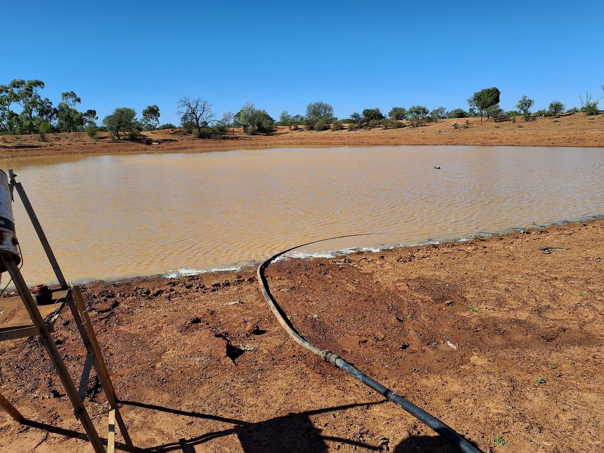 Hooked the bore up to pump into the big dam. She's all flowing backwards now. Gonna open a waterpark for me and the doggo and the cows and native wildlife. Should be pretty great. Thanks for the million dollar bore grant albo(PBUH).