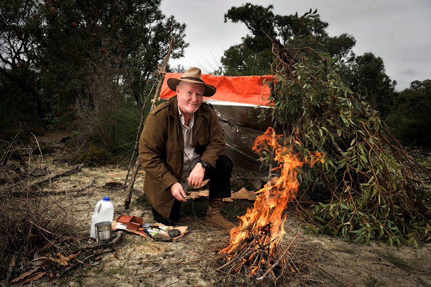 >outback survival specialist>lights fire right next to his plastic and leaf tentProbably not the best idea to do that.