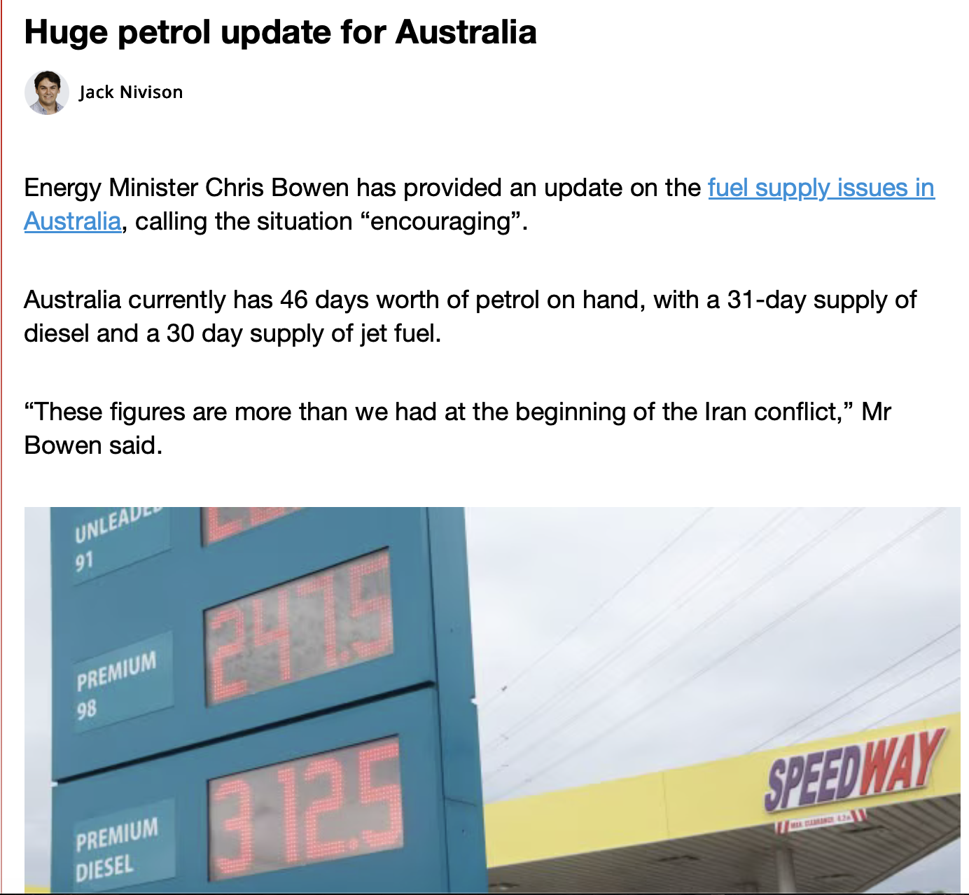 https://archive.md/7HKdi>Russian media mocks Anthony Albanese as country reaps billions in oil profits from Iran warhttps://archive.md/Ozz0g>Australia needs a national plan to manage population boom, planning institute sayshttps://archive.md/voQg8>Our fuel crisis isn’t a price, it’s China’s plan