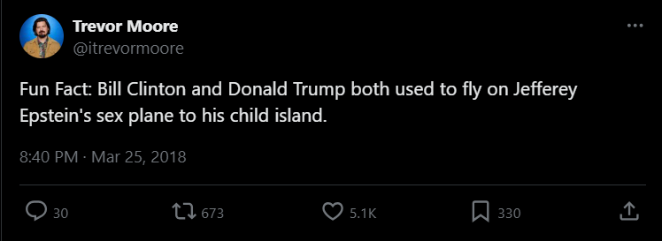 >>533351516>2018He fell for the line. Can anyone here point out the flight logs that have Trump going to and or from the island?
