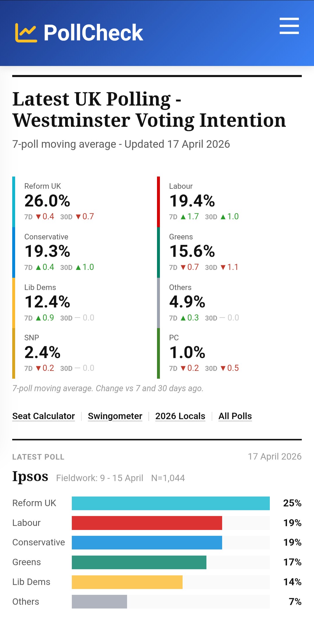 >recent aggregate poll of seven semi-reliable pollsters.
