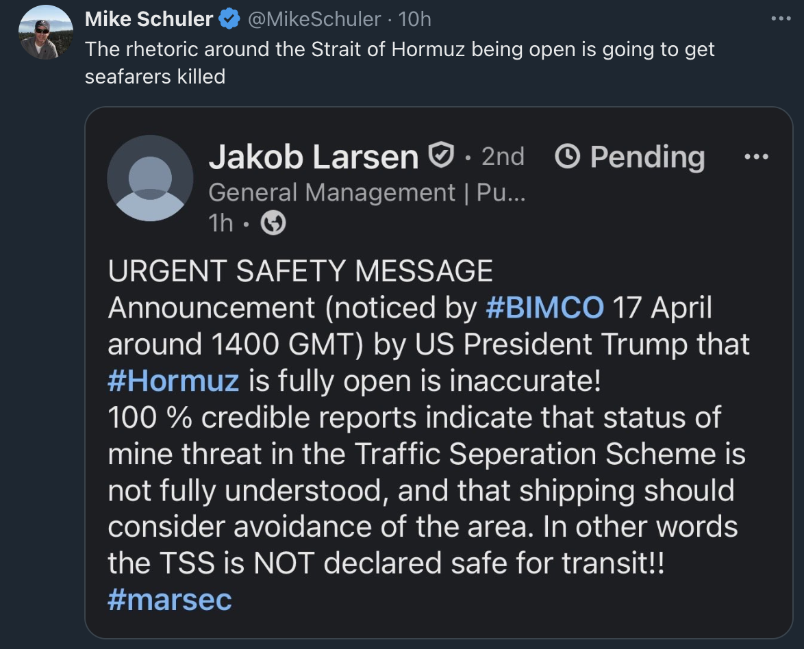 >>533362390>Just 20 minutes before Trump's announcement that the Strait was open