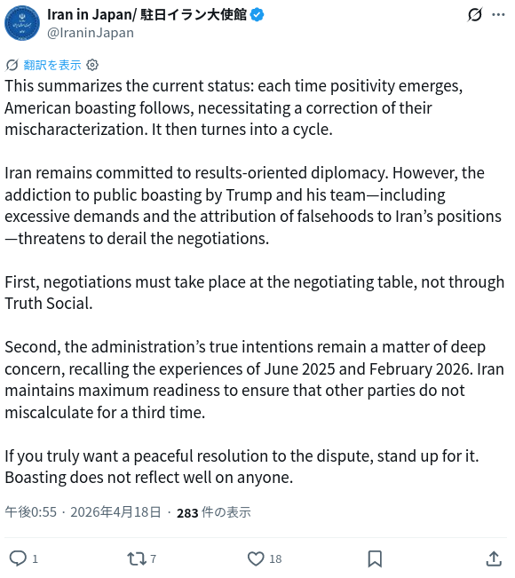 >>533360107Iranian regime seems to be sick of shitposts by the orange mad man..https://x.com/IraninJapan/status/2045350375583285479