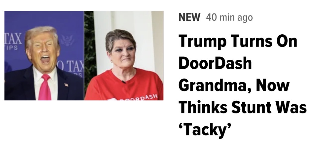 >>533371364https://www.thedailybeast.com/trump-turns-on-doordash-grandma-and-savages-tacky-stunt/it's real